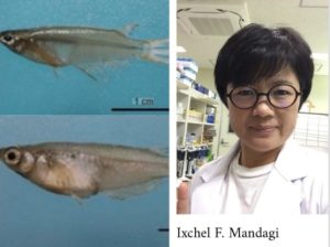 Gambar: Ikan Padi (Medaka), dan Ixchel Feibie Mandagi, SPi.,MSi.,PhD (Peneliti University of the Ryukyus Jepang dan FPIK Unsrat).